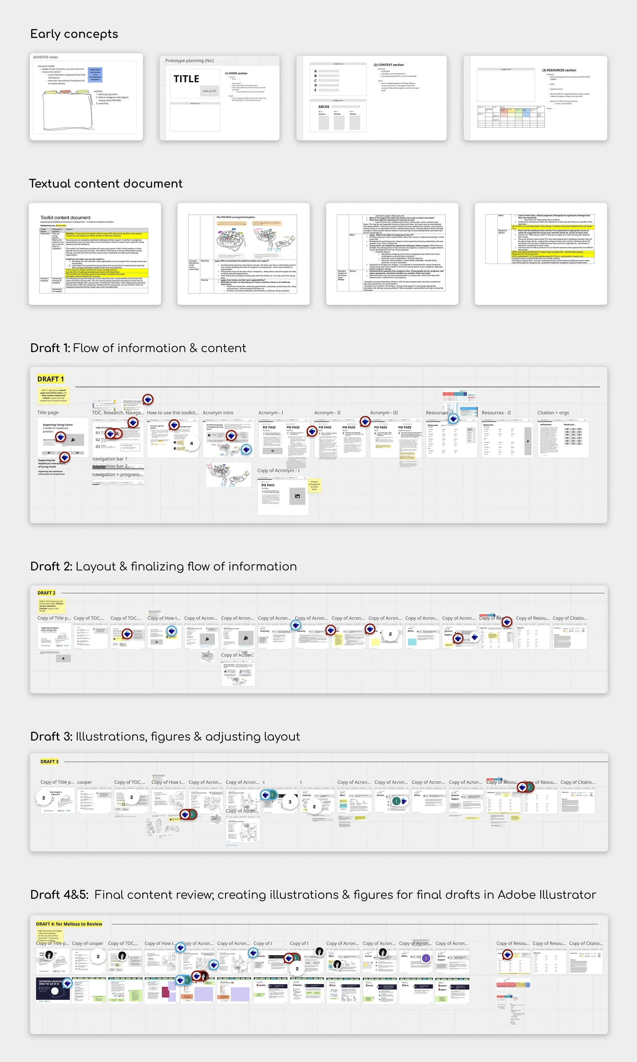 The toolkit drafts went through approximately six review cycles with the research team. Feedback was also collected from end users through advisory meetings and a co-design workshop.